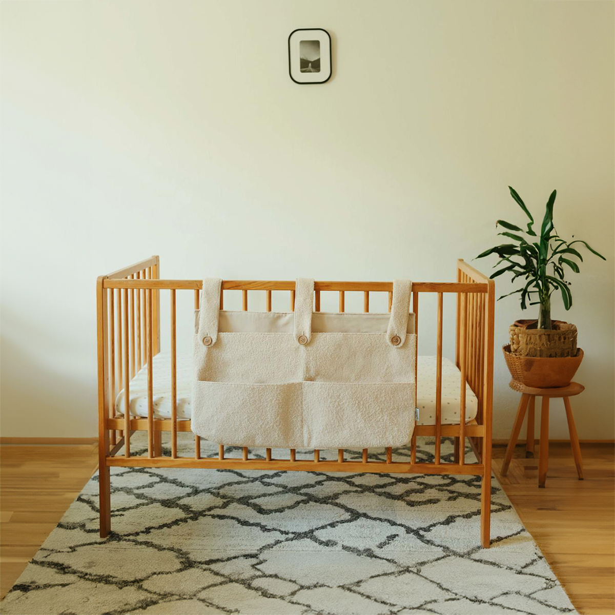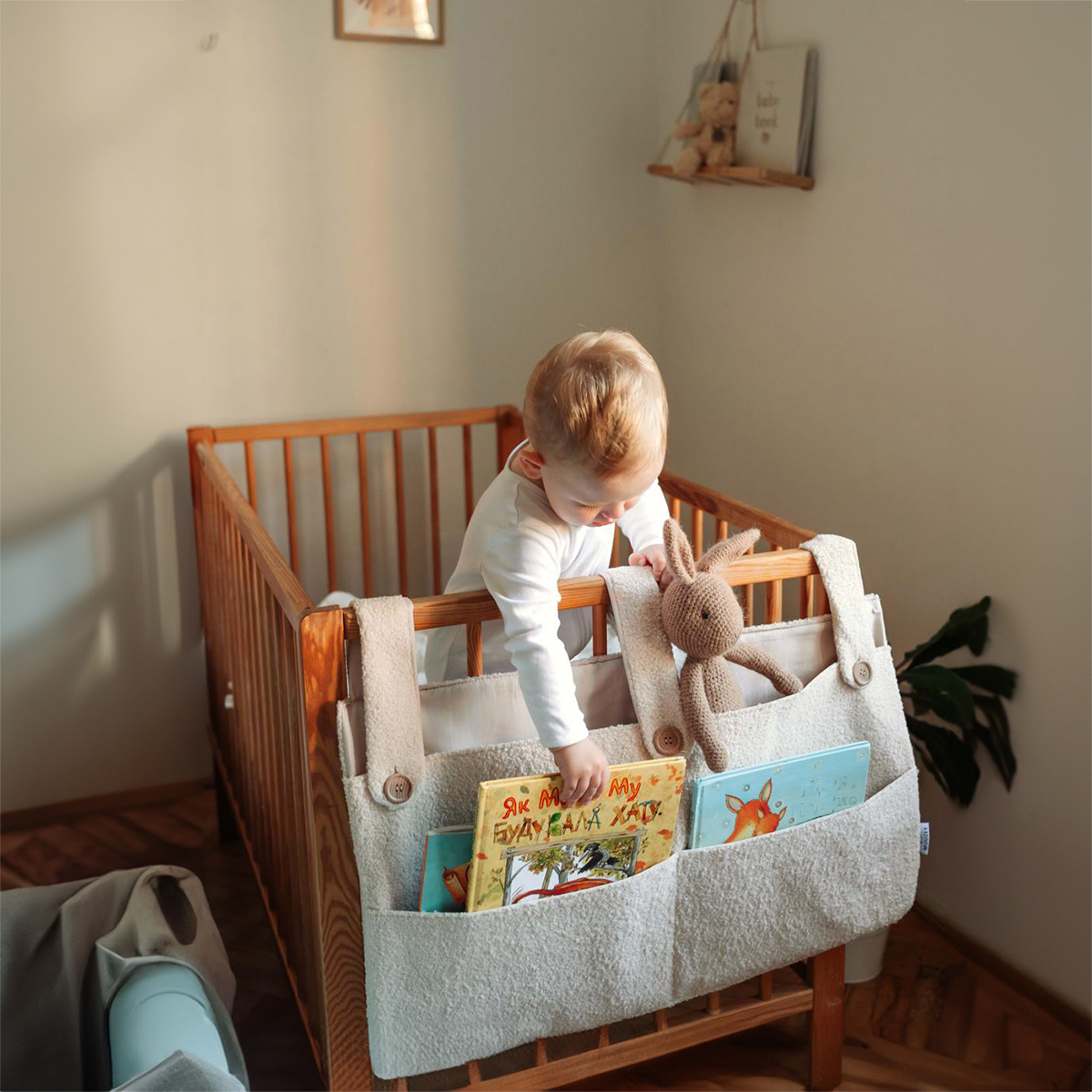 Babybox opbergzak van Muuzey met 4 vakken (65x40cm). Praktische organizer voor speelgoed aan de box. Stijlvol design, eenvoudig bevestigen.