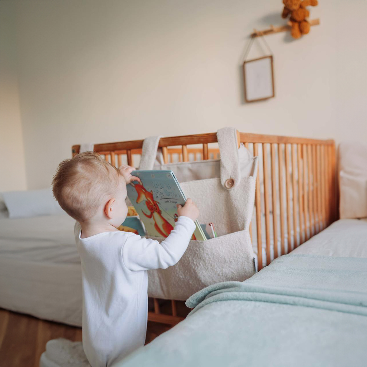 Met stevige linten bevestig je de opbergzak babybox gemakkelijk aan elke standaard babybox. Geen tools nodig – binnen een minuut hangt de zak stevig en veilig.