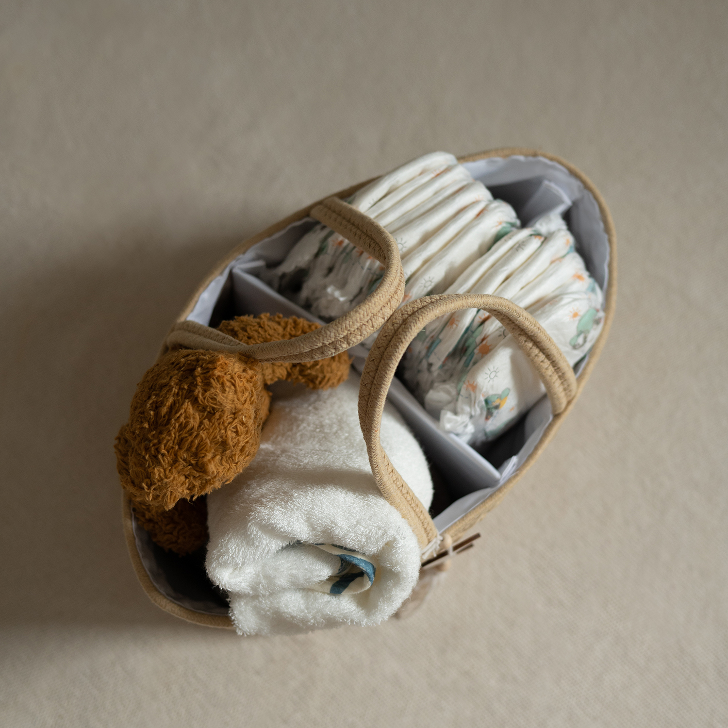 Het luiermandje is gemaakt van zachte teddystof en heeft een warme, moderne uitstraling. Hierdoor is het niet alleen praktisch in gebruik, maar ook een echte eyecatcher in de babykamer of kinderkamer. Het stevige materiaal is veilig, duurzaam en eenvoudig schoon te maken – perfect voor dagelijks gebruik met een baby.