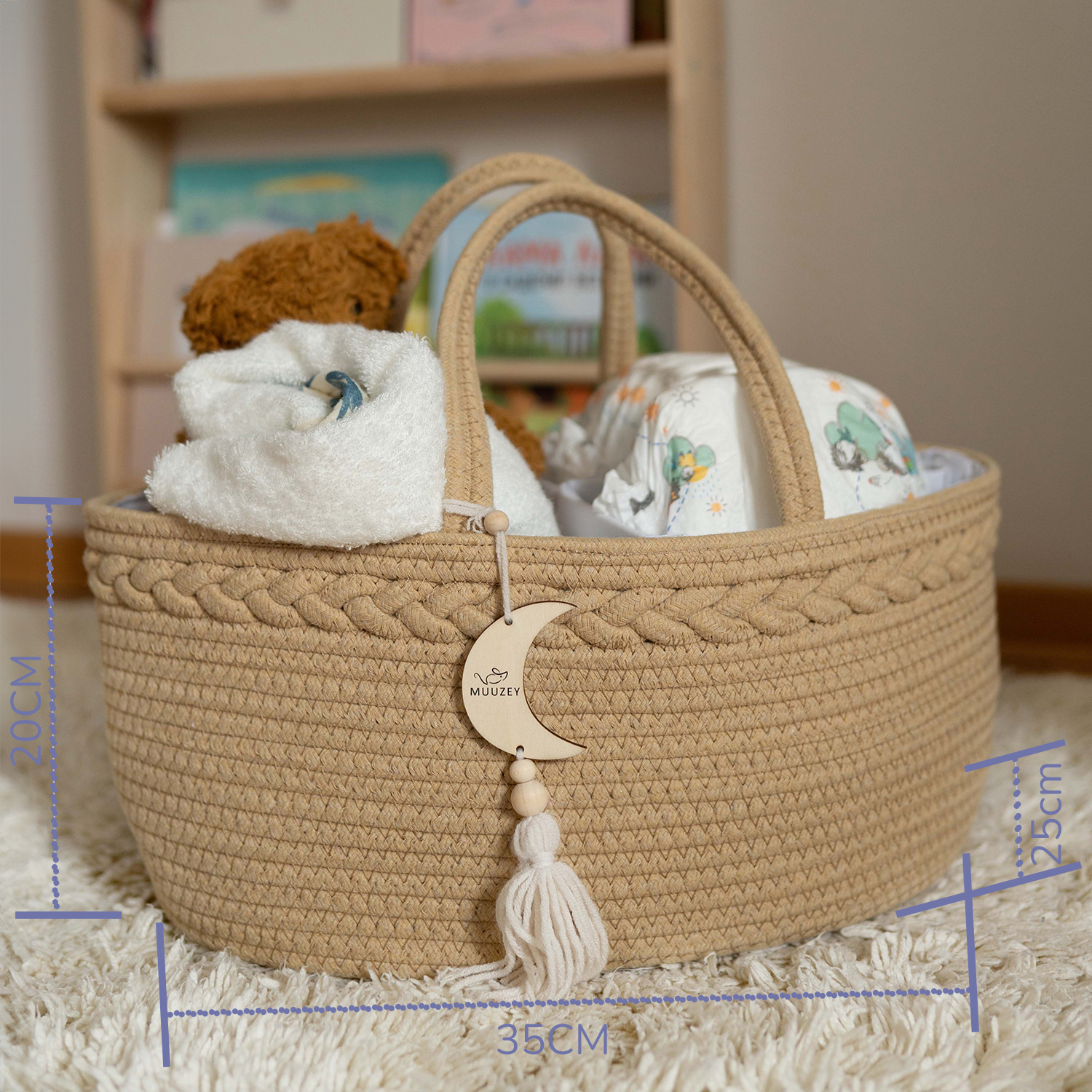 Breng rust, overzicht en stijl in de babykamer met het Muuzey Luiermandje in crème. Deze stijlvolle luier organizer is ideaal om luiers, billendoekjes en verzorgingsproducten netjes bij elkaar te houden. Dankzij het slimme formaat past het mandje perfect op elke commode, zonder kostbare ruimte in te nemen.